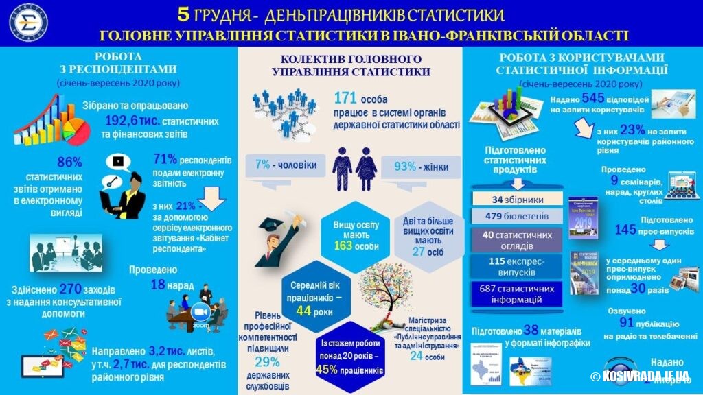 Попит у суспільства та громадськості на статистичну інформацію, підготовлену фахівцями Головного управління статистики, є високим, про що свідчить кількість публікацій у засобах масової інформації. Так, за січень–вересень 2020 року у засобах масової інформації оприлюднено 236 повідомлень про соціально-економічне становище області, міст та районів, 4,4 тис. інформаційних матеріалів; на радіо та телебаченні фахівцями Головного управління статистики озвучено 91 публікацію; зафіксовано близько 80 тис. відвідувань офіційного вебсайту Головного управління статистики.